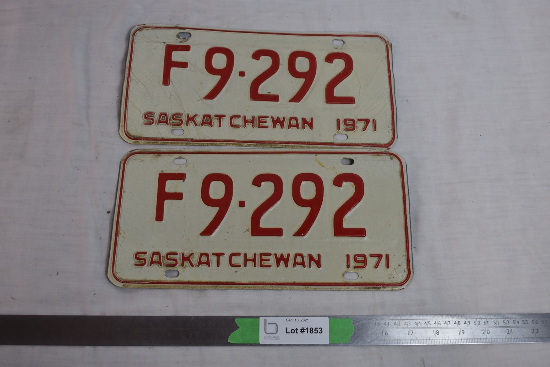 1971 Sask Farm License Plate Pair