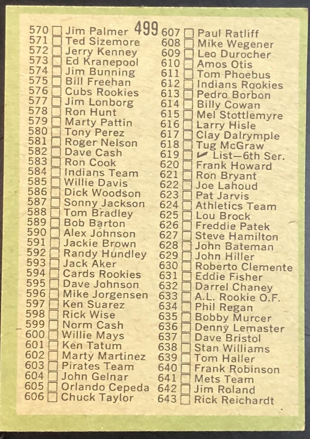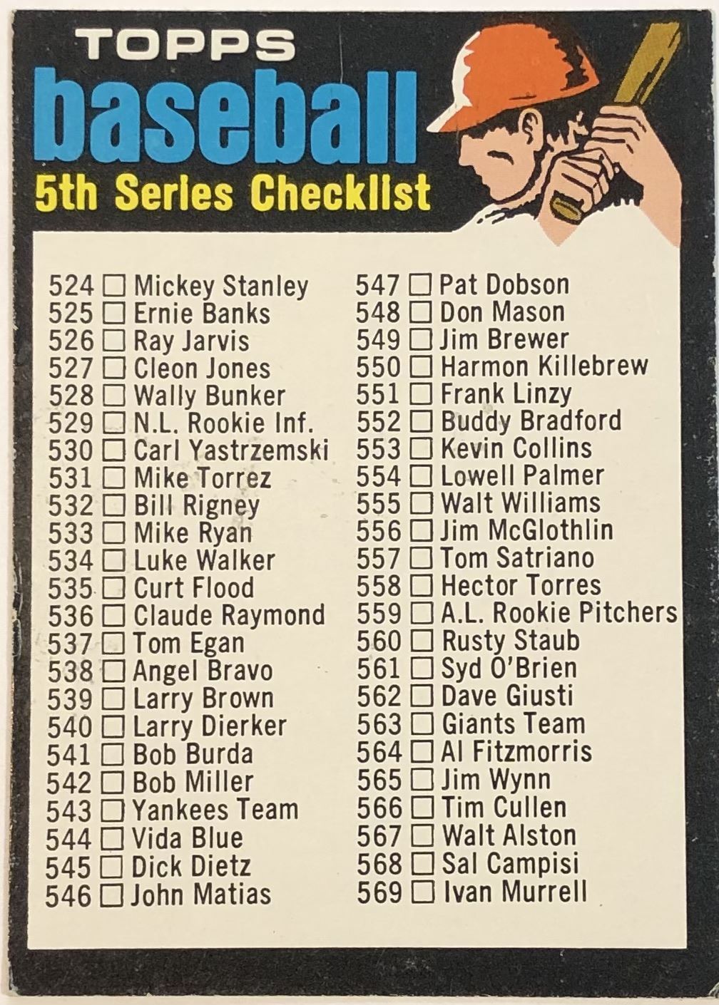1971 TOPPS 5th SERIES CHECKLIST