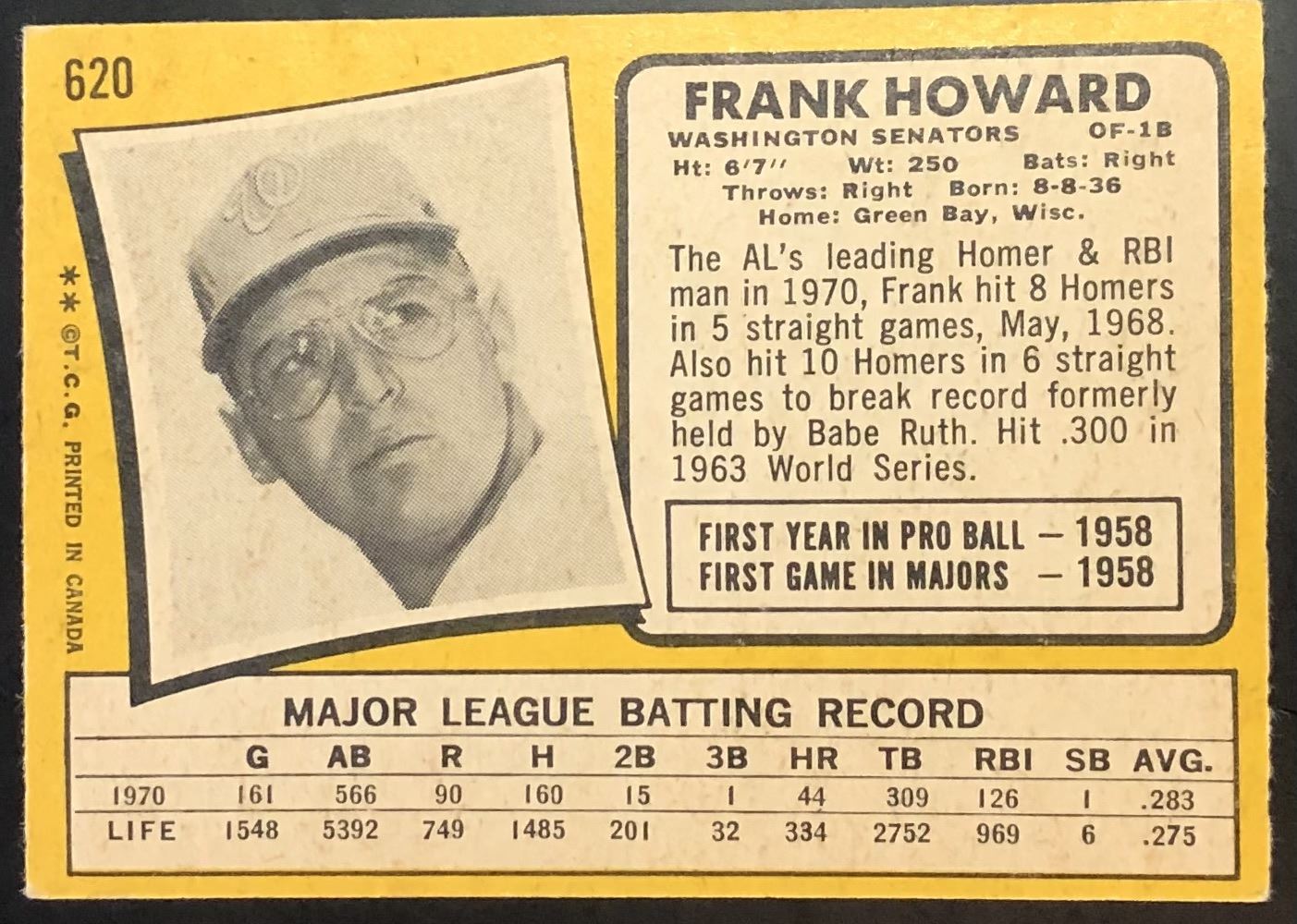 Card #620 OPC, vintage, MLB, baseball, hall of fame