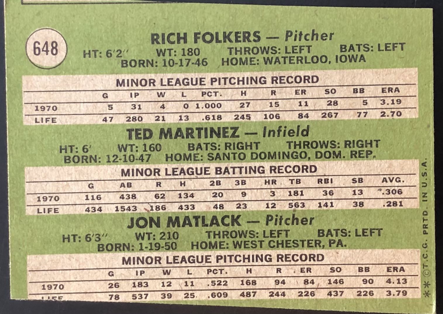 Card #648 vintage, MLB, baseball, rookie
