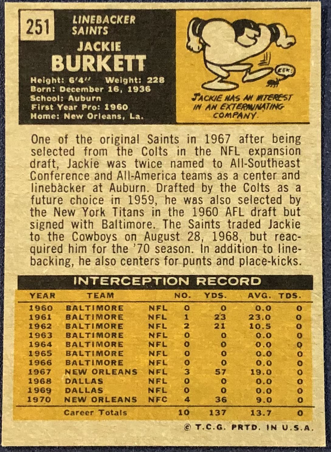Card #251 NFL, football, vintage