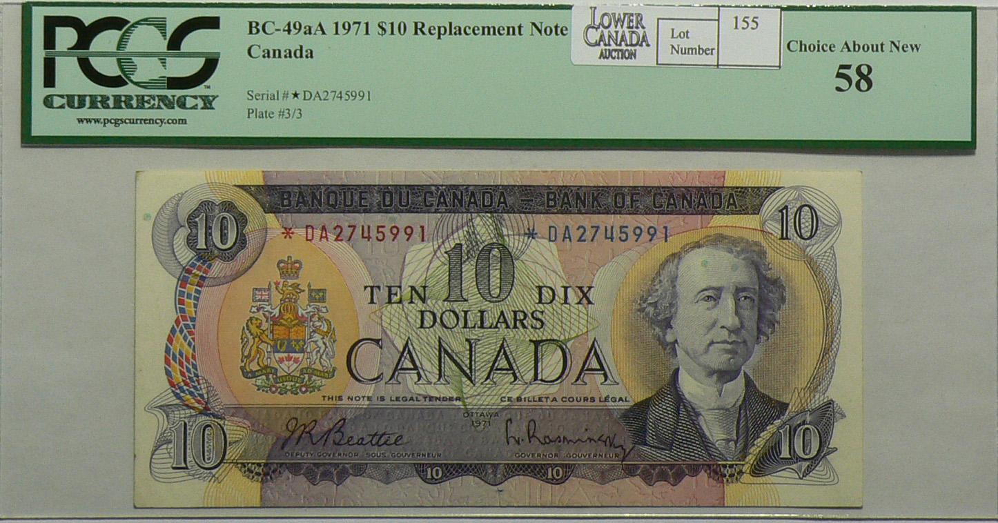 1971 Ten Dollars Replacement, BC-49aA, PCGS AU-58, Beattie Rasminsky, serial *DA2745991.