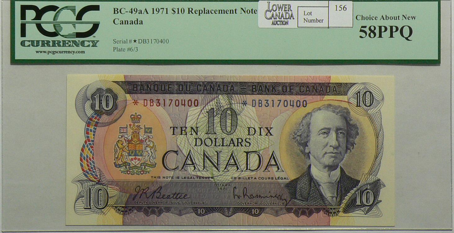 1971 Ten Dollars Replacement, BC-49aA, PCGS AU-58 PPQ, Beattie Rasminsky, serial *DB3170400.
