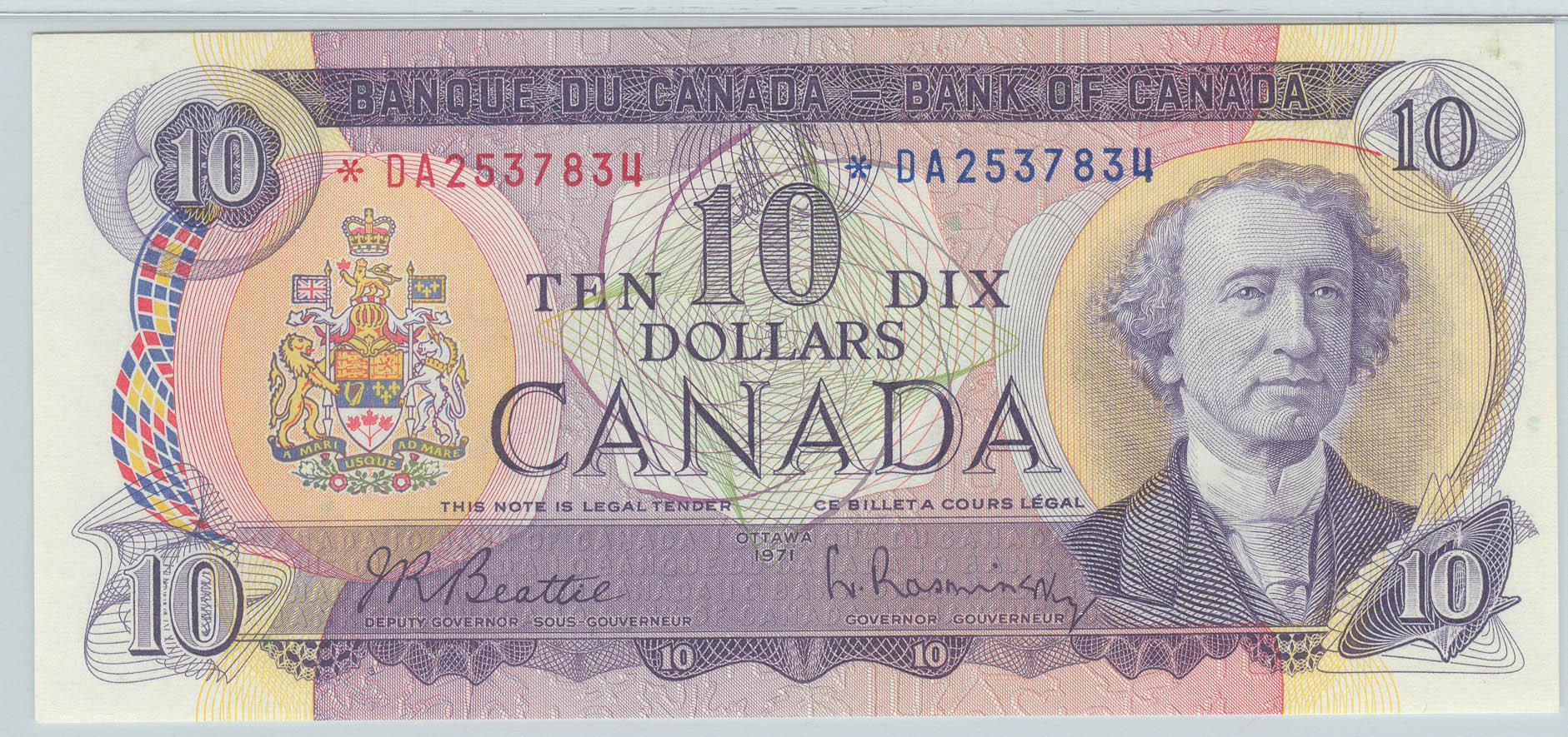 1971  Ten Dollars  Replacement, BC-49aA, PMG UNC-65 EPQ, Beattie Rasminsky, serial *DA2537834.