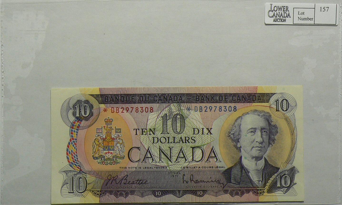 1971 Ten Dollars Replacement, BC-49aA, UNC, Beattie Rasminsky, serial *DB2978308.