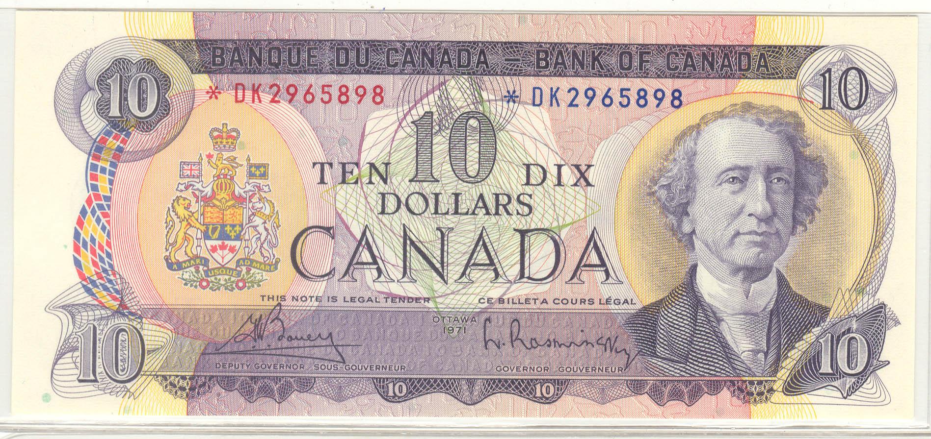 1971 Ten Dollars Replacement, BC-49bA, GEM UNC, Bouey Rasminsky, serial *DK2965898.