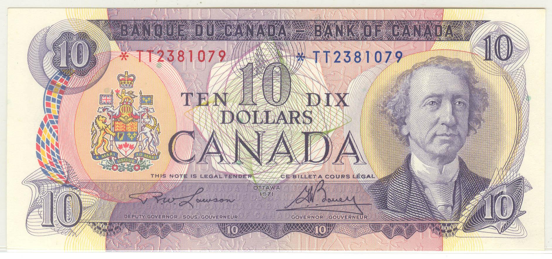1971 Ten Dollars Replacement, BC-49cA, GEM UNC, Lawson Bouey, serial *TT2381079.