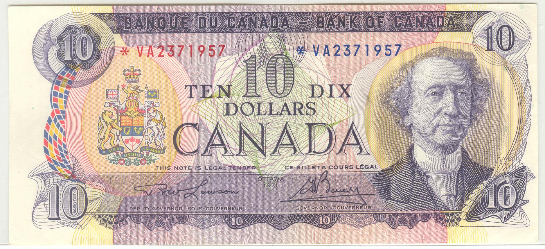 1971 Ten Dollars Replacement, BC-49cA, UNC, Lawson Bouey, serial *VA2371957.