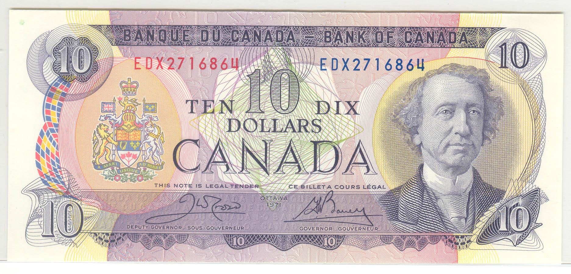 1971 Ten Dollars Replacement, BC-49dA, GEM UNC, Crow Bouey, serial EDX2716864, Lithographed Back.