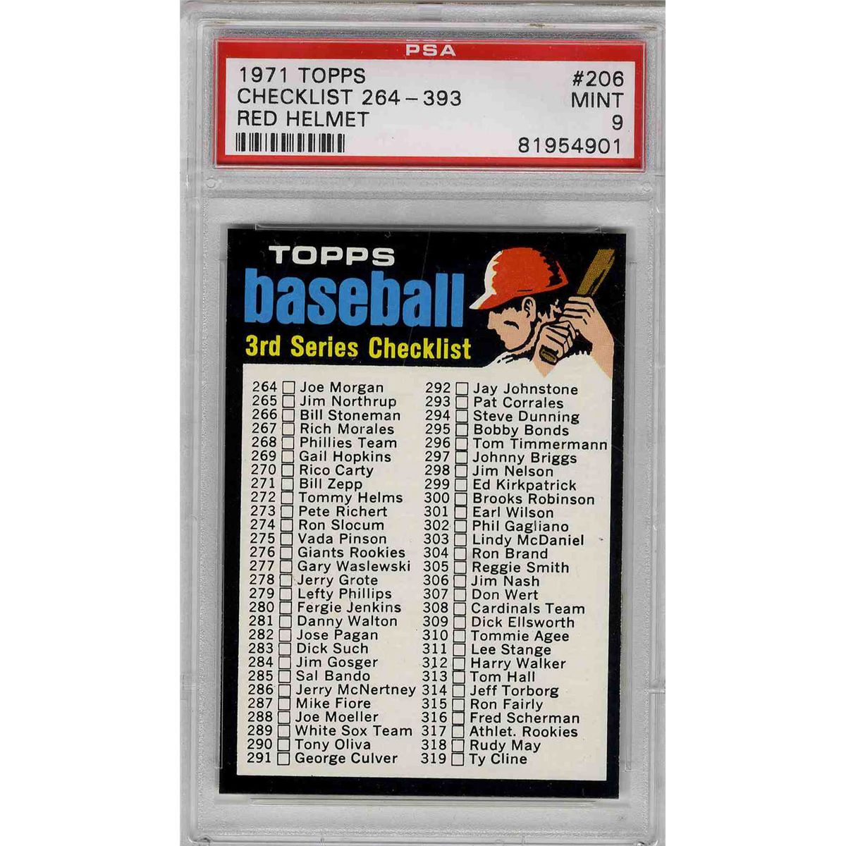 1971 Topps -- Checklist #206 -- PSA 9 -- Population 1 of 3