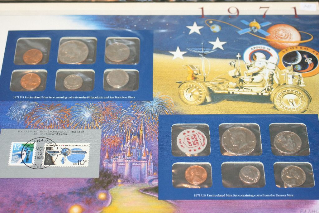 1971 US Mint Coin Set Commerating Apollo 15, P,D&S Mints, UNC W/Postal Stamp Dated 1992