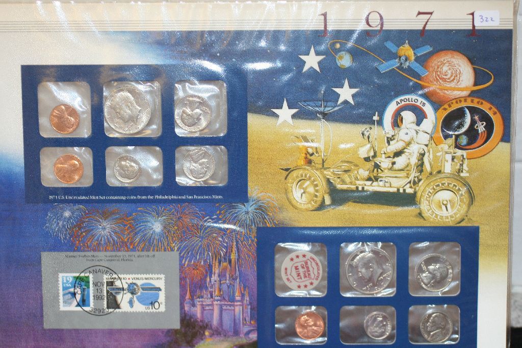 1971 US Mint Coin Set, P,S&D Mints, UNC W/Postal Stamp Commerating Mariner 9 Orbits Mars Dated 1992