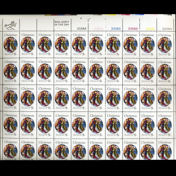 Full 50pc mint sheet with several stamps exhibiting color shift