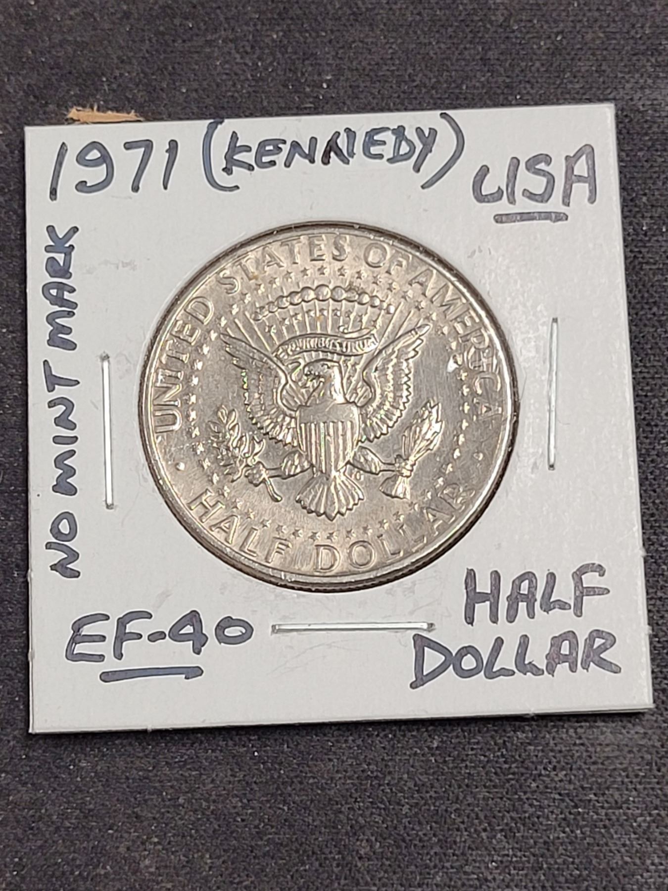 1971 Usa Kennedy Half Dollar Coin (No Mint Mark) EF-40