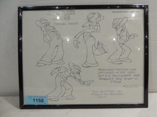 1971 WALT DISNEY PRODUCTION MODEL SHEET MORTIMER MOUSE. FRAMED 15X12. AS SHOWN. VIEW PICTURE FOR DETAIL.