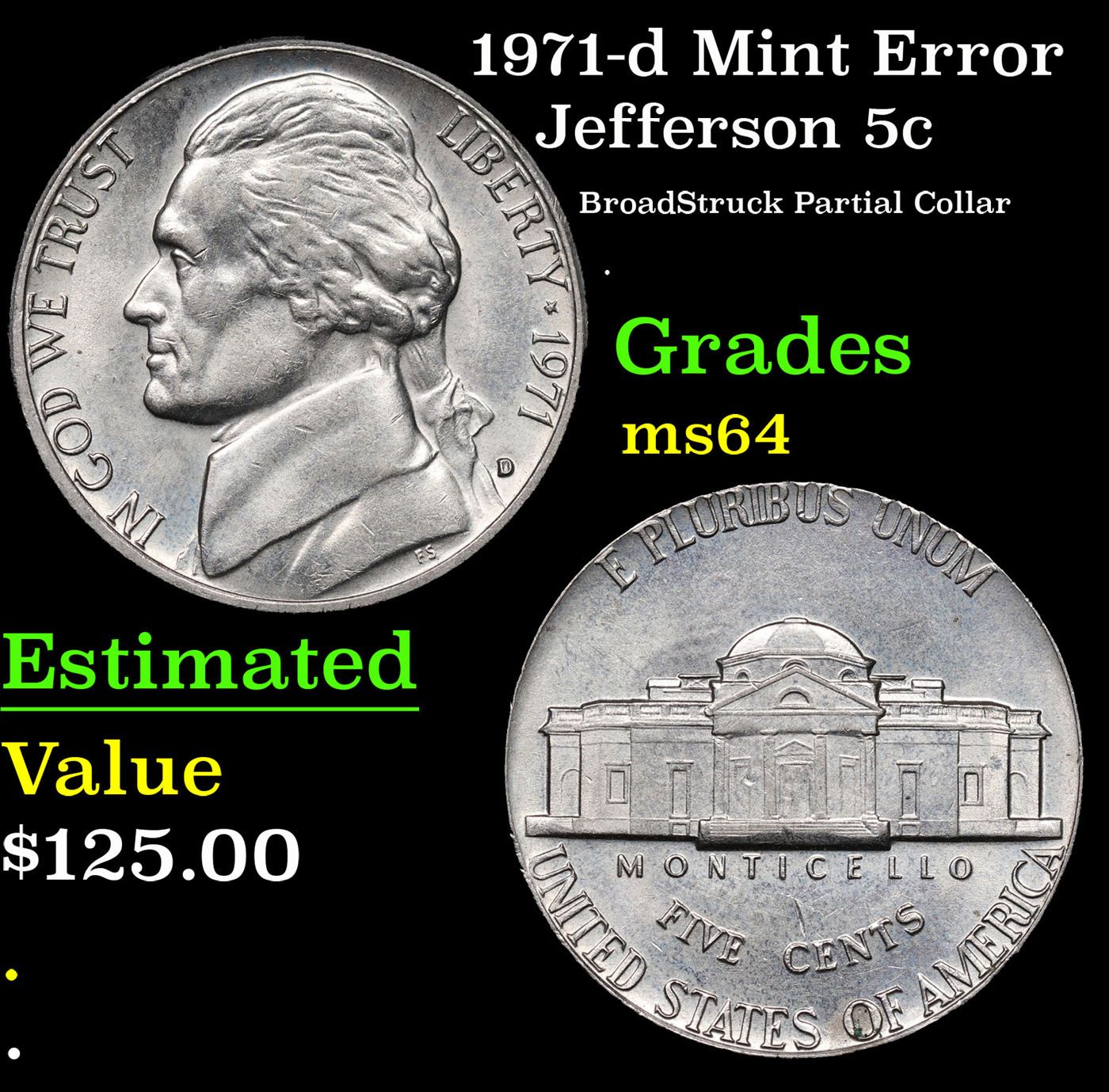 1971-d Mint Error Jefferson Nickel 5c Grades Choice Unc.