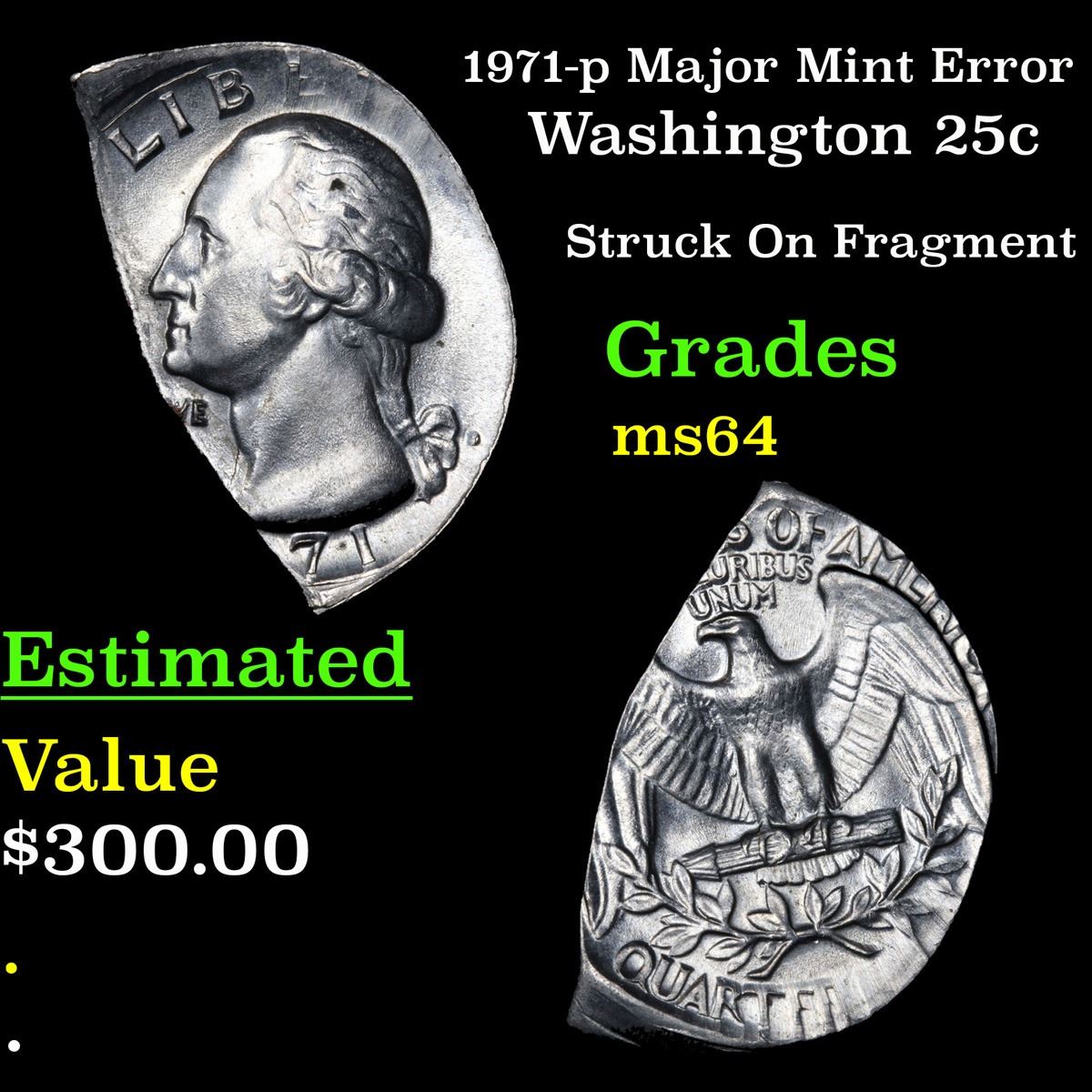 1971-p Major Mint Error Struck On Fragment . Washington Quarter 25c Grades Choice Unc. A Corey's Pick, Bid to Win Coin