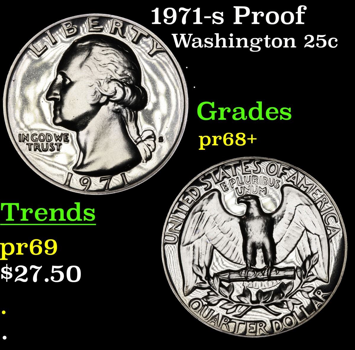 1971-s Proof . . Washington Quarter 25c Grades GEM++ Proof.