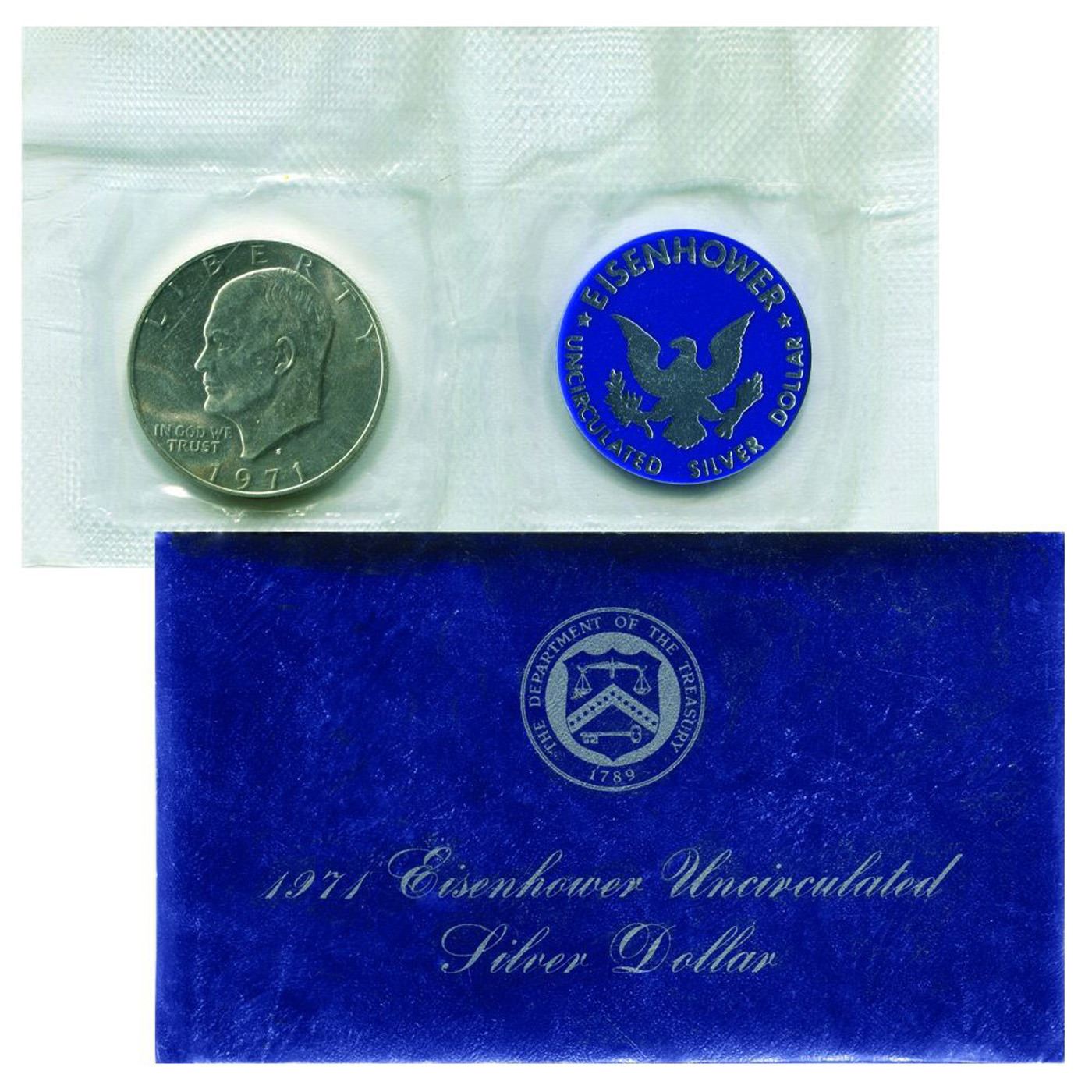 1971-s Silver Uncirculated Eisenhower "Blue Ike" Silver Dollar in Original Packaging .