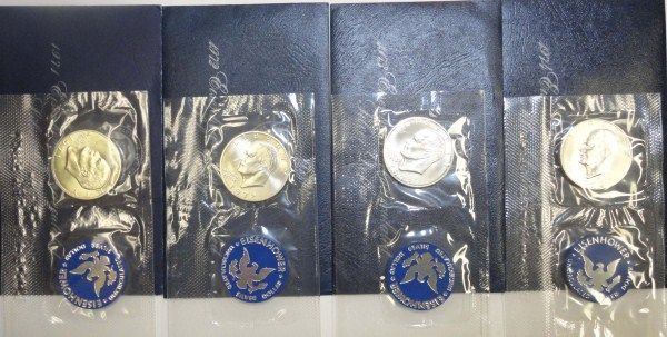 1971 thru 74 unc, Eisenhower Dollars, blue envelopes