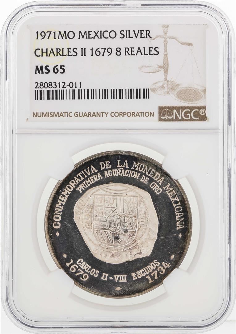One 1971MO Mexico Charles II 1679 8 Reales Silver Coin NGC MS65. NGC Certified.