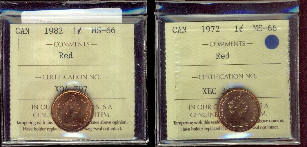1972 1¢ & 1982 ICCS MS66RD. Lot of 2 coins.
