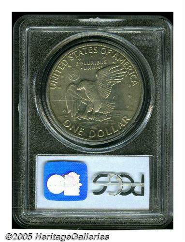 <B>1972<$1> Type One MS65 PCGS.</B></I> A lustrous silver-gray piece that has a reasonable strike and a small mark in the left obverse field. Three different reverse subtypes are known for the 1972, Type One has a weak outline on Earth between 9 and 12 o'clock. Type Two is the key subtype.