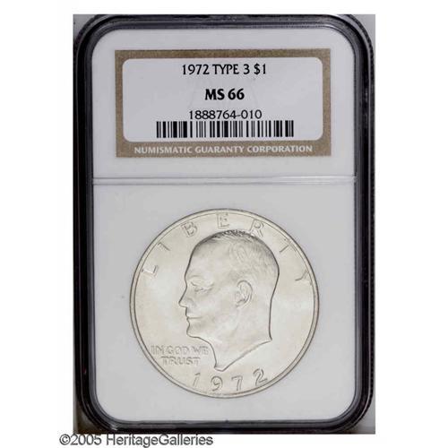 1972 $1 Type Three MS66 NGC. This popular Ike variety 1972[$1] Type Three MS66 NGC.