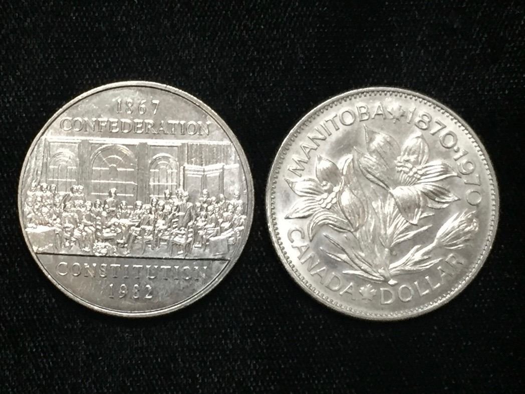 Lot 39; Royal Canadian Mint, 1972 Canada $1 Manitoba Centennial Commemorative Dollar, 1982 Canada $1 Confederation Constitution Commemorative Dollar, Queen Elizabeth II Tiara Portrait