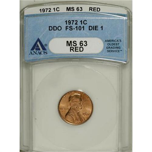 1972 1C Doubled Die Obverse Red MS63 ANACS