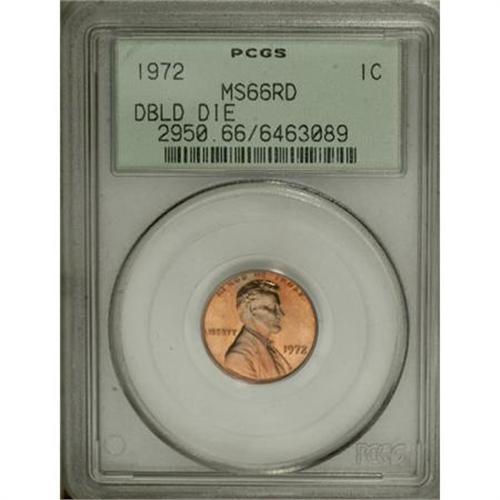 <B>1972 1C Doubled Die Obverse MS66 Red PCGS.</B></I> PCGS Population (460/16). NGC Census: (141/8). Mintage: 75,000. Numismedia Wsl. Price for NGC/PCGS coin in MS66: $1,150. (#2950)<BR><BR><B>Coin Engraver:</B> Victor D. Brenner<BR><BR><b>Shipping:</b> Coins & Currency (<a target="_blank" href="http://www.heritageauctions.com/common/shipping.php">view shipping information</a>)