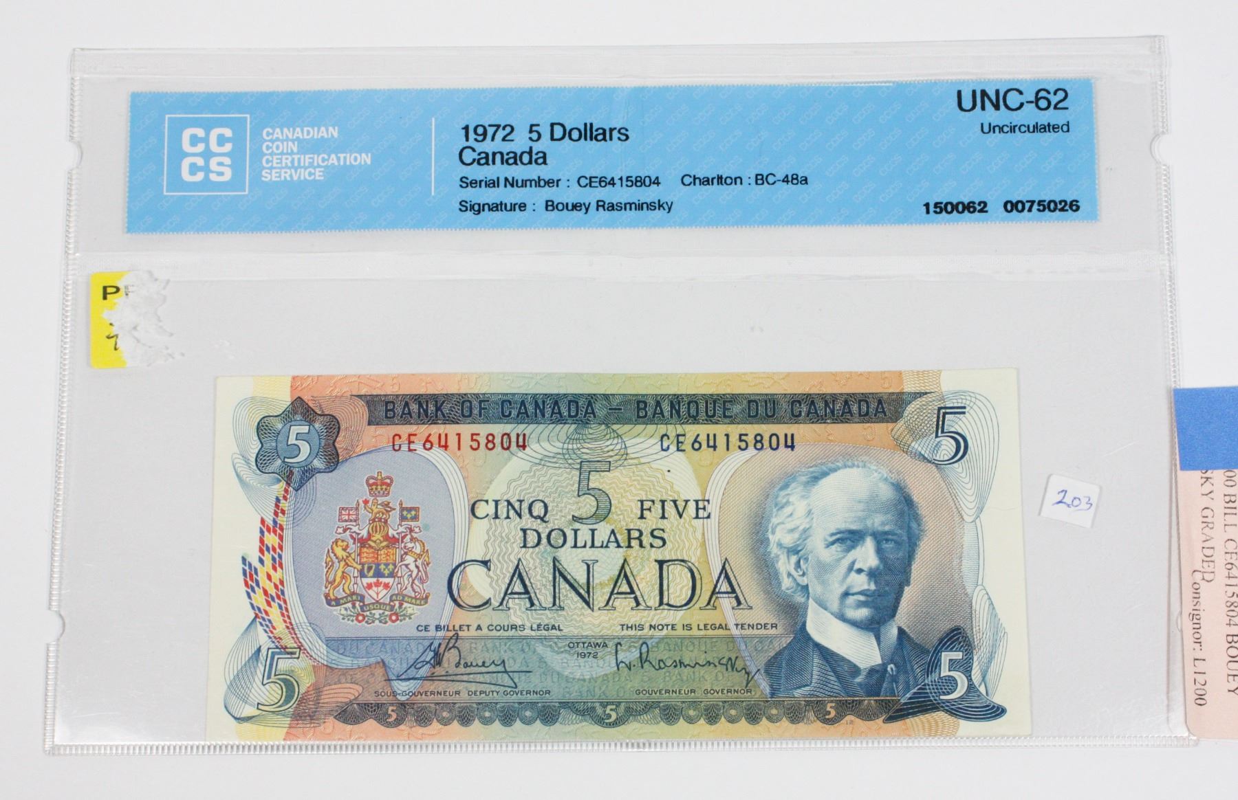 UNCIRCULATED -62 BY C.C.C.S. Twin to Lot 6098 1972 $5.00 bill Another beautiful example bill Uncirculated 62