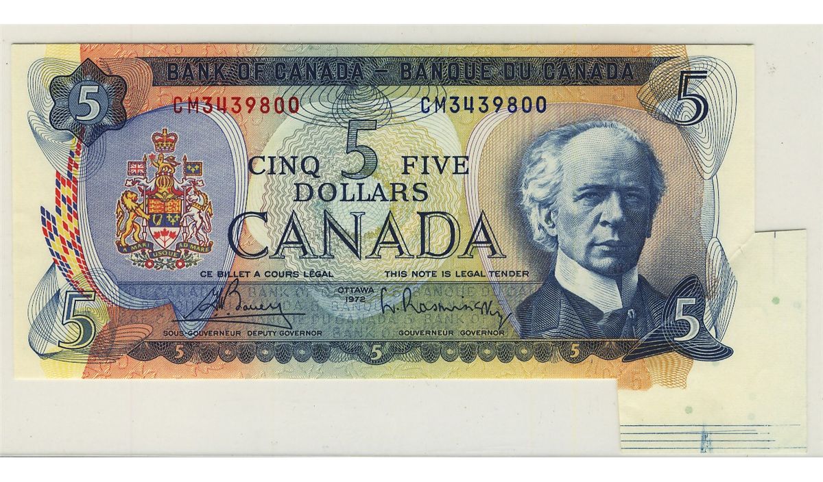 1972 $5 BC-48a #CM3439800 CUTTING ERROR PCGS AU-58.