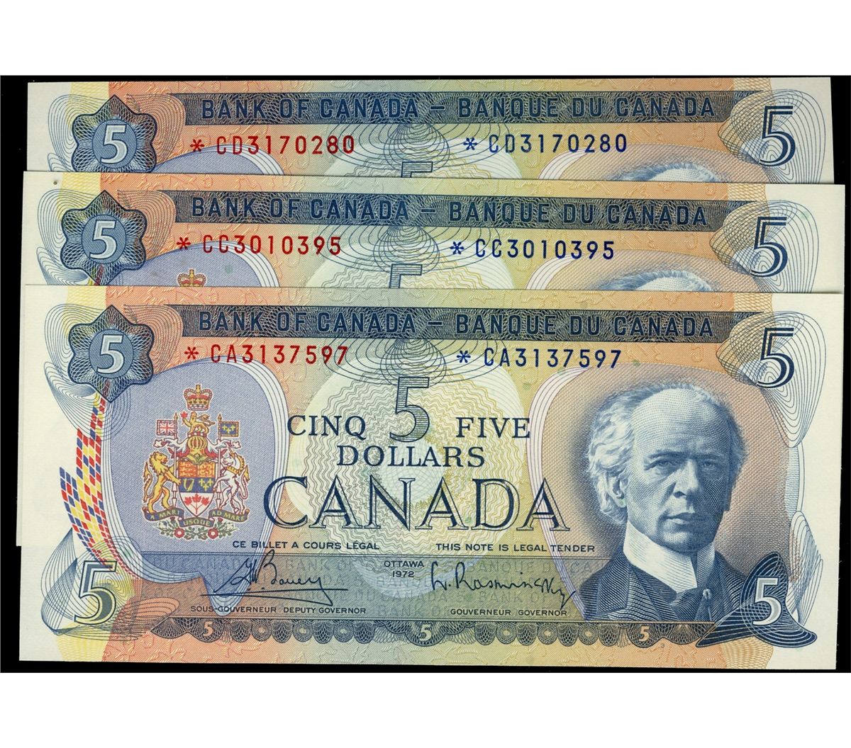 1972 $5 BC-48aA #*CA, *CC, *CD. Lot of 3 UNC issues.