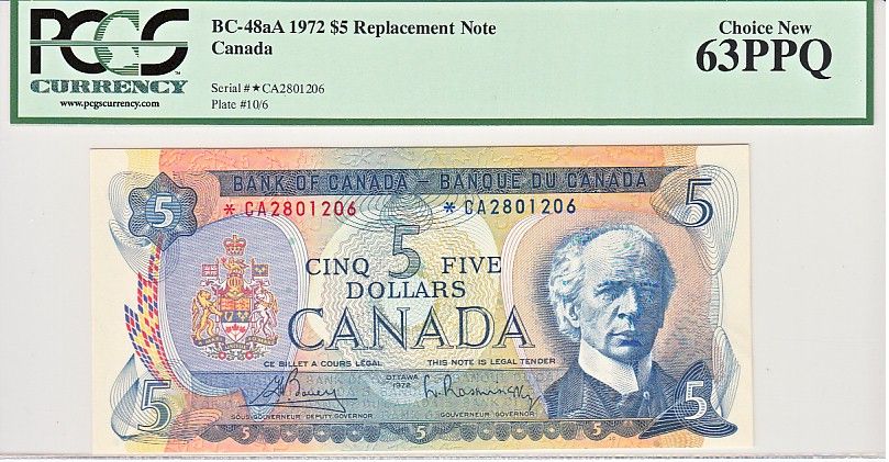 1972 $5 BC-48aA #*CA2801206 PCGS CH UNC63PPQ.