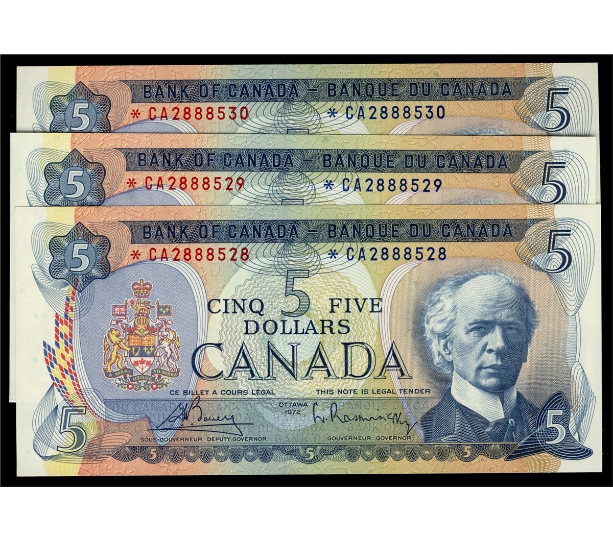 1972 $5 BC-48aA #*CA288528,529 & 530. Lot of 3 consecutive notes all UNC.