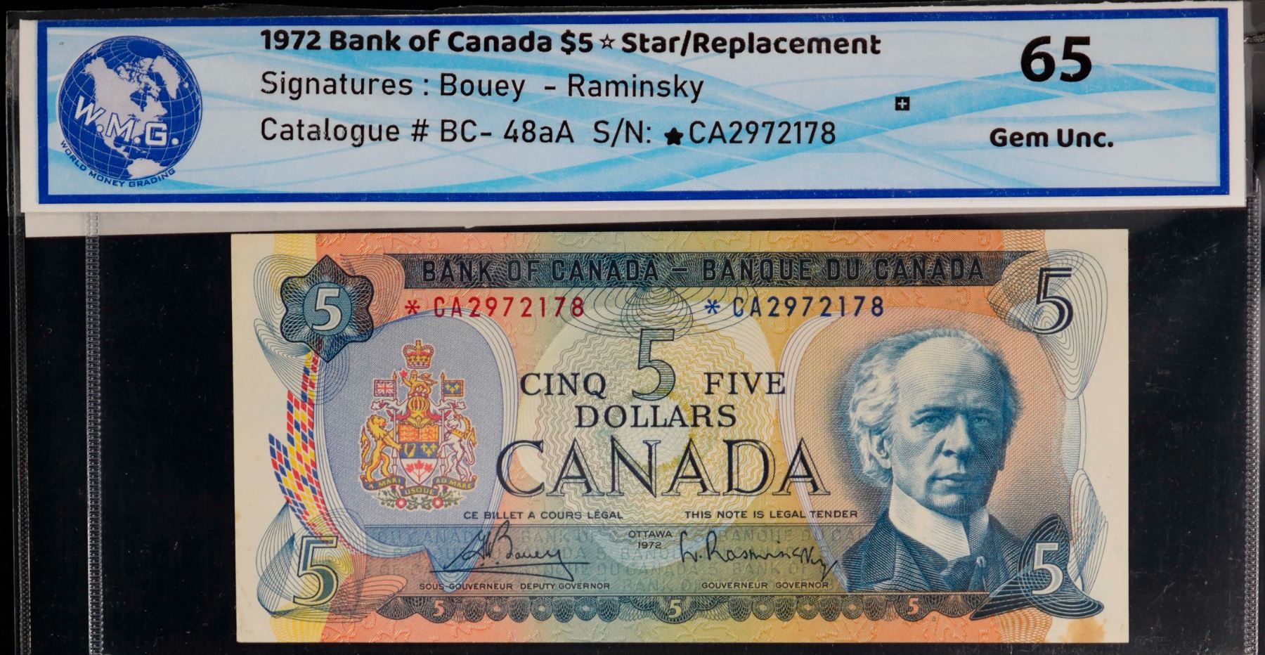 1972 $5 BC-48aA #*CA2972178 Unc with stain at bottom