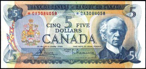 1972 Five Dollars Bouey-Rasminsky, BC-48aA, serial number *CA3084058, Uncirculated