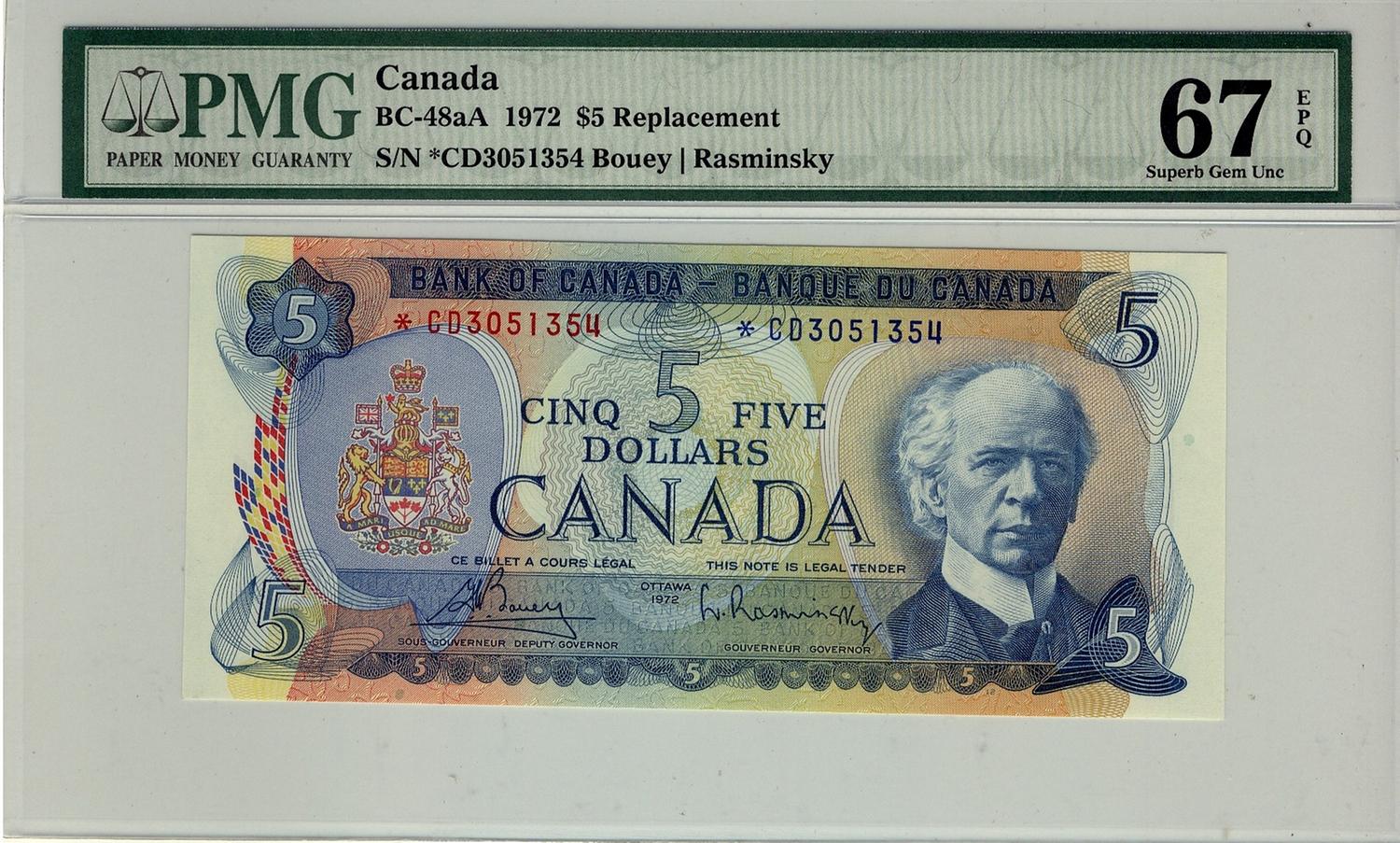 1972 $5 BC-48aA #*CD3051354, PMG Superb Gem UNC67EPQ.