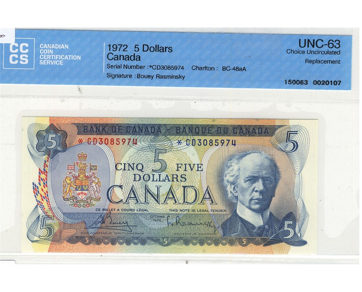 1972 $5 BC-48aA Replacement #*CD CCCS Choice UNC-63.