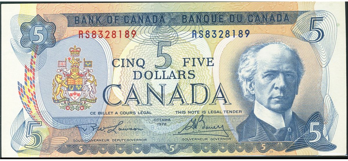 1972 $5 BC-48bA #RS8328189 CCCS UNC60. Strong and clean colours. Very rare TEST note and seldom offered. Worth a premium bid.