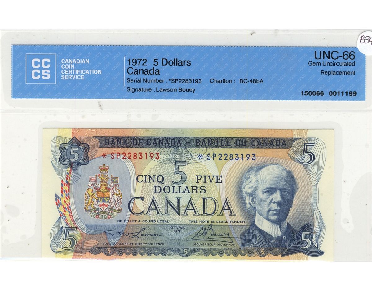 1972 $5 BC-48bA Replacement #*SP2283193 CCCS UNC 66.