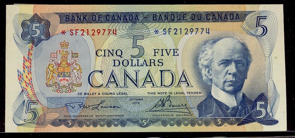 1972 $5 BC-48bA #*SF2129774. AU example with light corner flip.