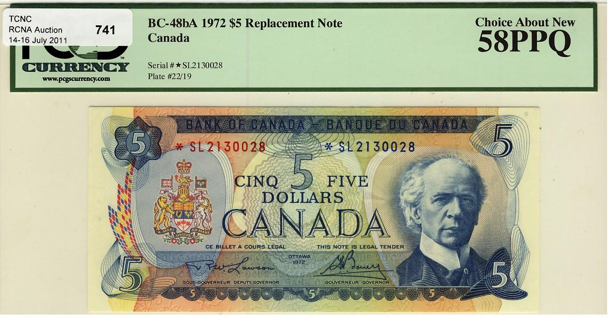 1972 $5 BC-48bA *SL2130028 PCGS AU58PPQ