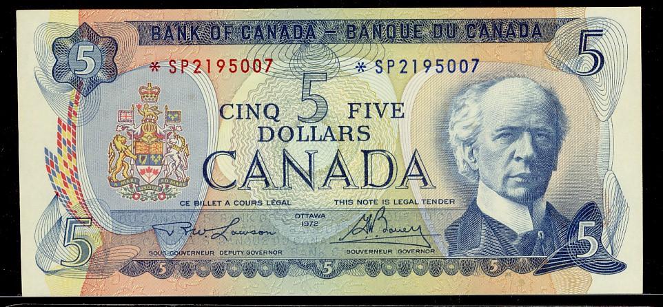1972 $5 BC-48bA #*SP2195007. Choice UNC issue.