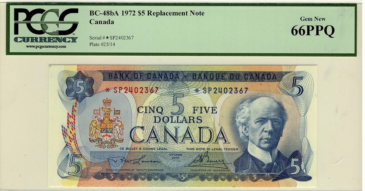 1972 $5 BC-48bA #*SP2402367, PCGS Gem UNC66PPQ.