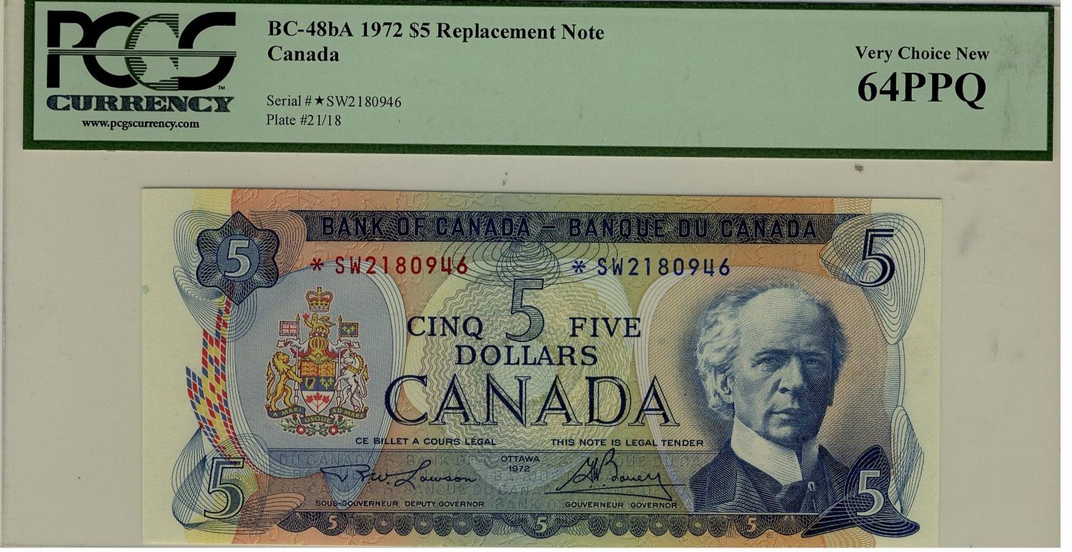 1972 $5 BC-48bA #*SW2180946 PCGS UNC64PPQ