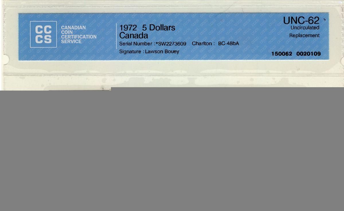 1972 $5 BC-48bA *SW2273609 CCCS UNC62