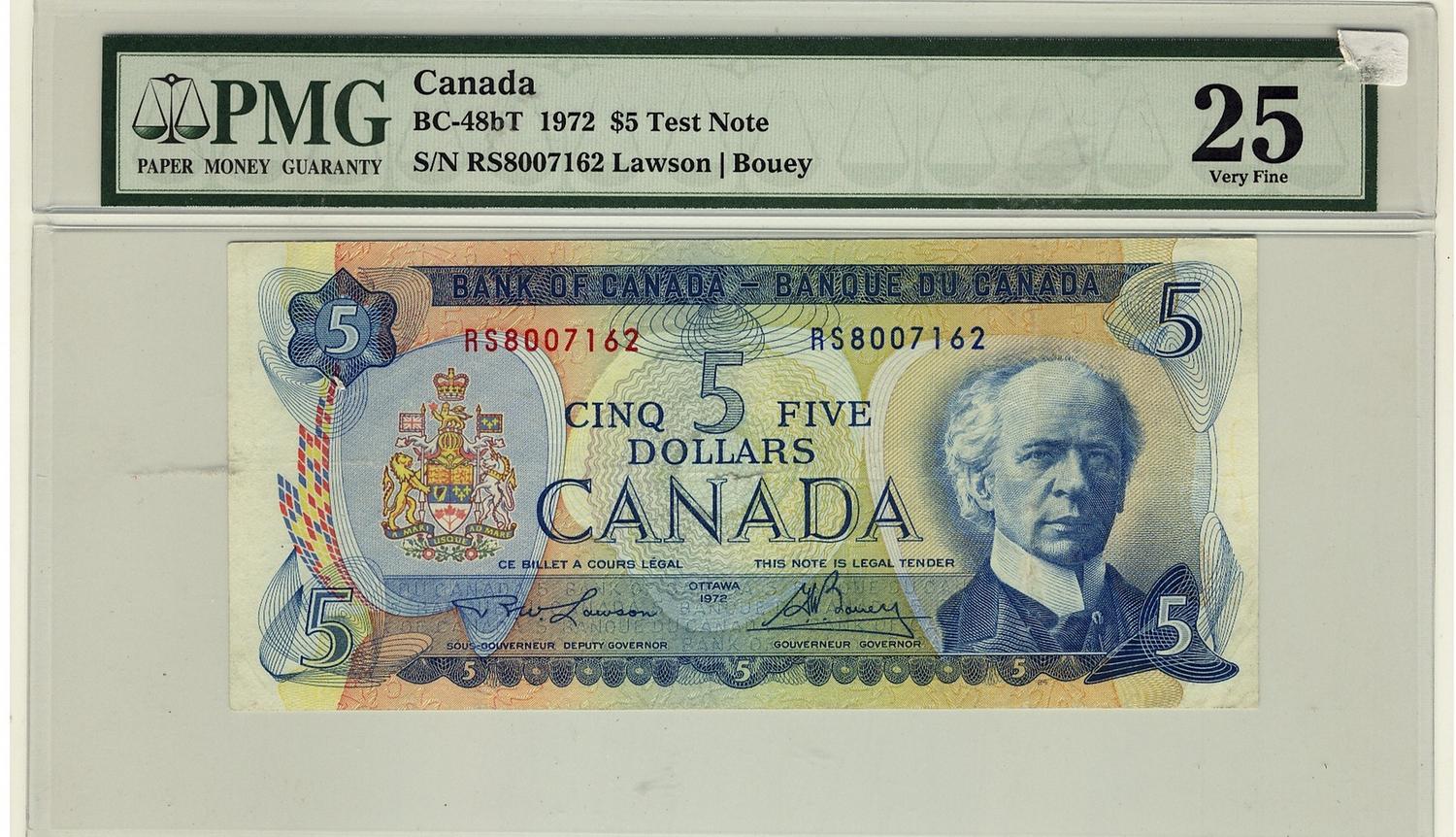 1972 $5 BC-48bT #RS8007162, PMG VF25. Rare test note