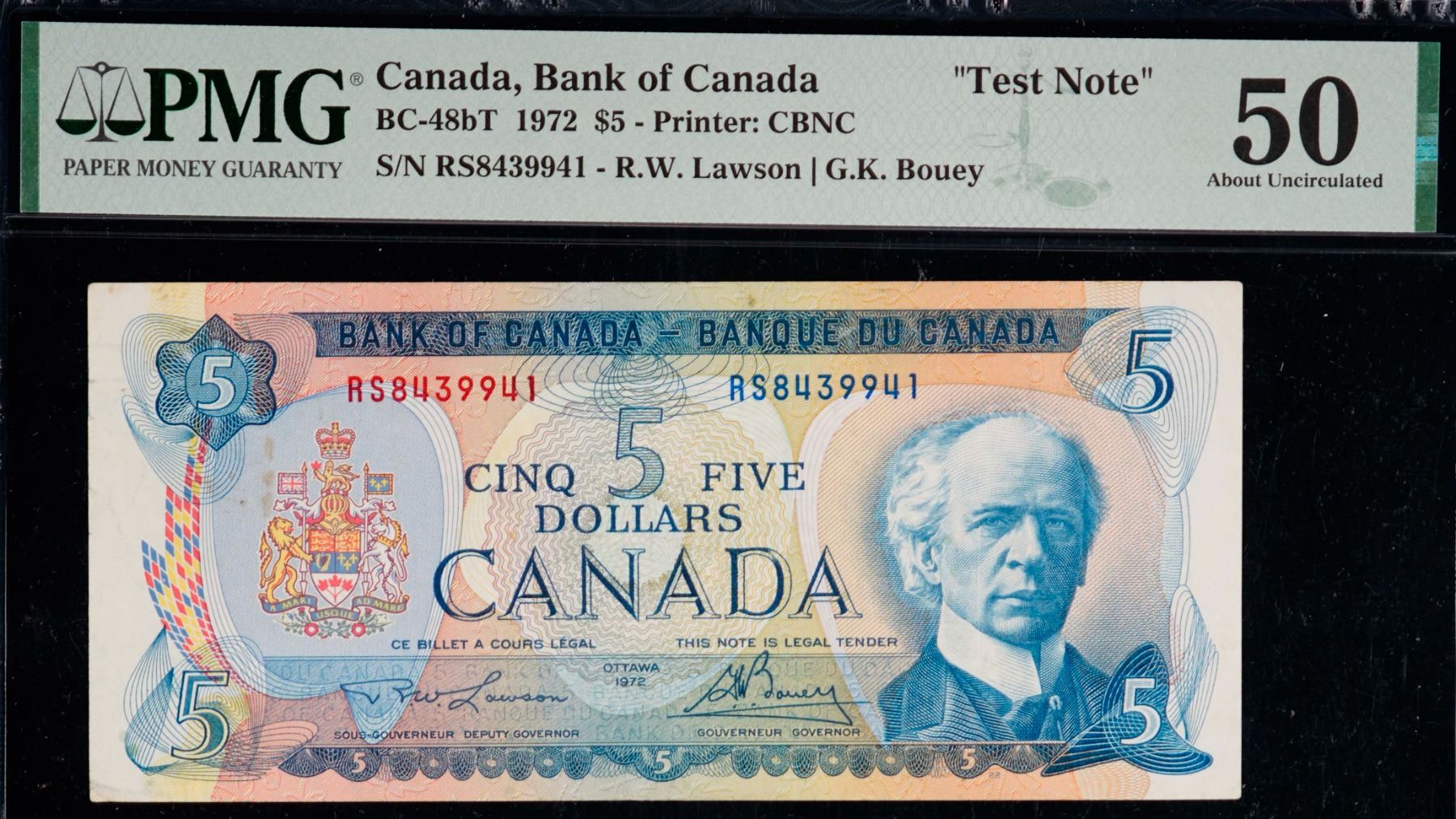 1972 $5 BC-48bT "Test Note" #RS8439941 PMG About Uncirculated-50. A bright example.